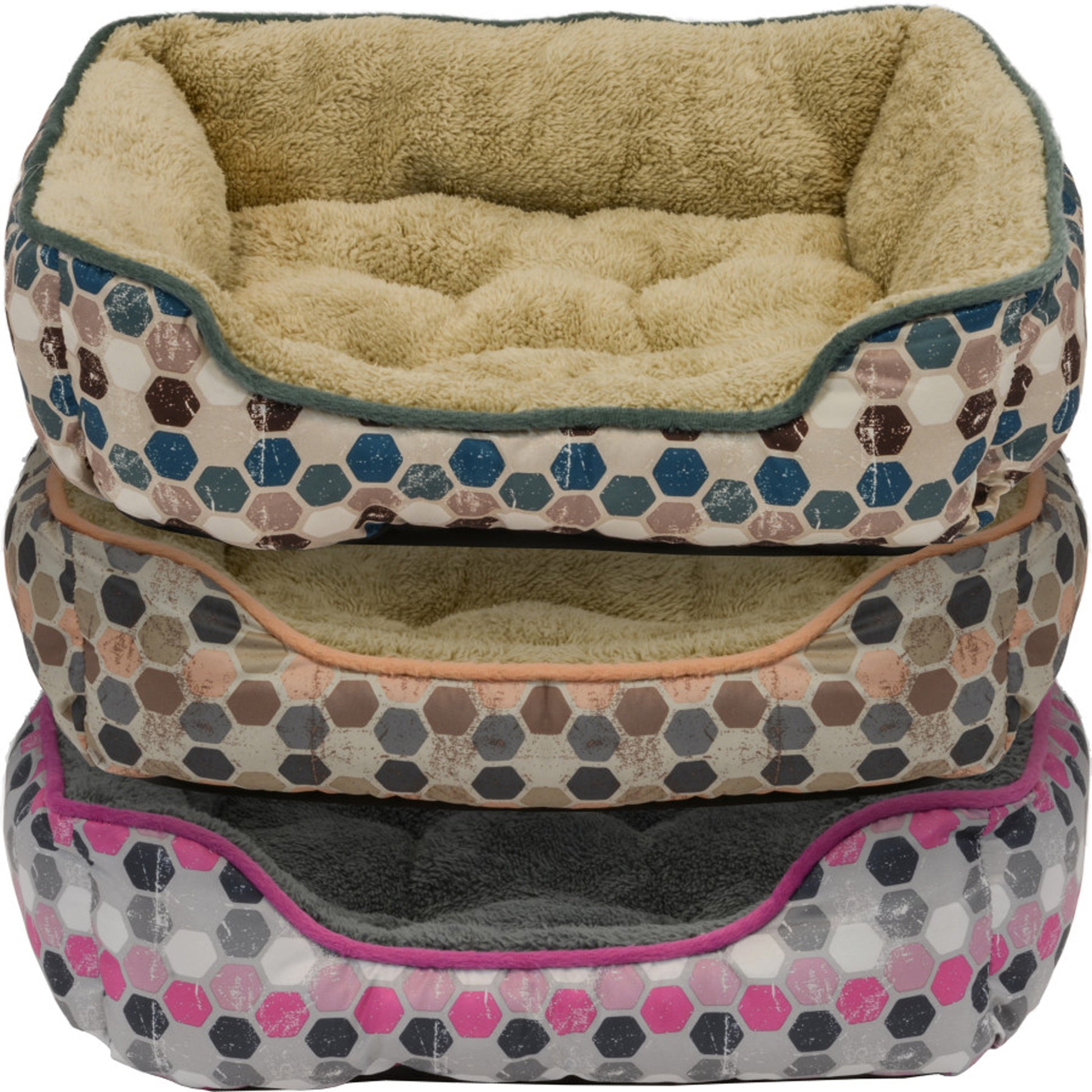 -19in Assorted Print Box Bed with Luxurious Super Plush Sleep SurfaceBolstered Walls for added comfort and supportPet Bed is Machine Washable